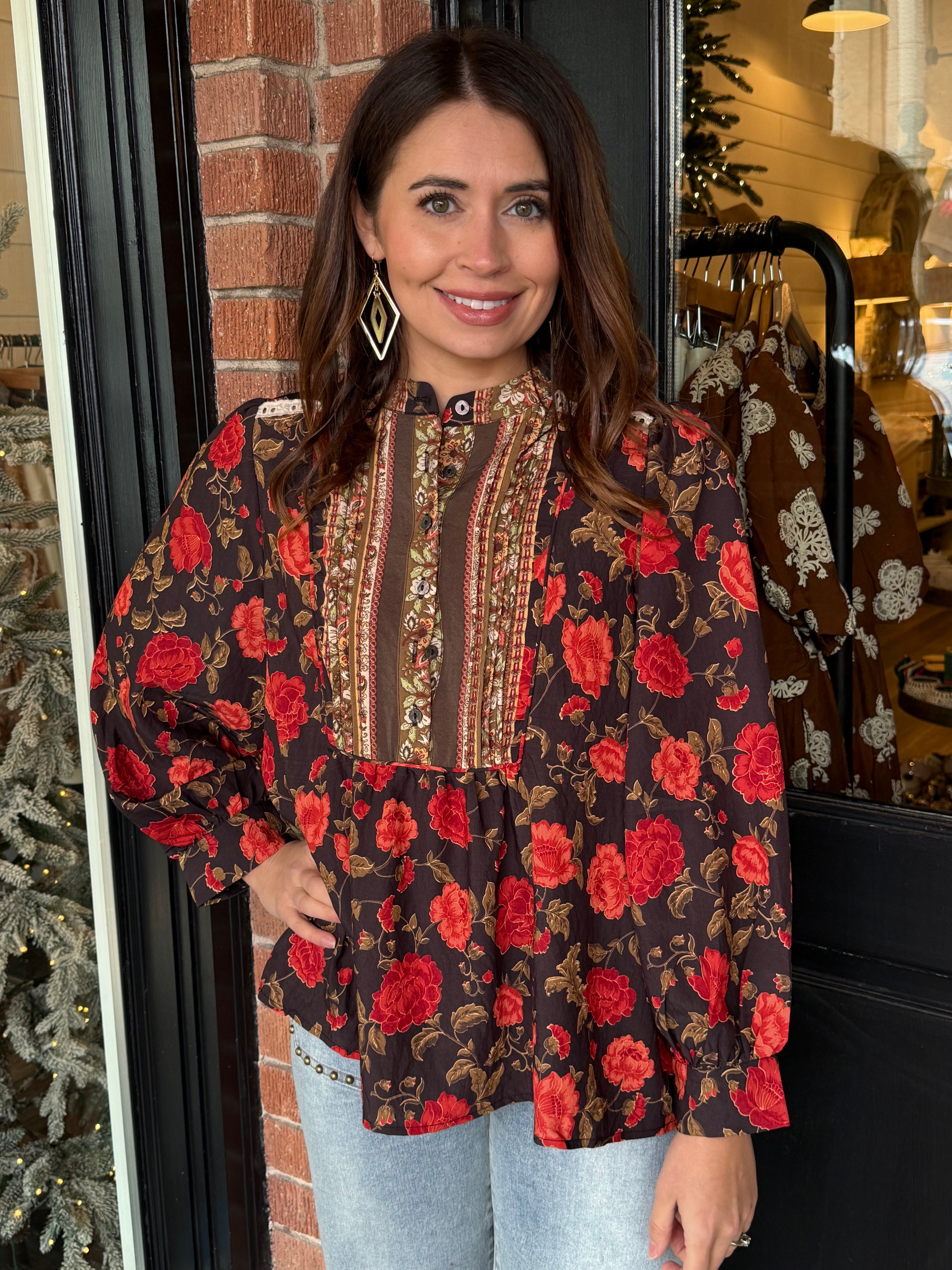 The Wren is a beautiful everyday blouse with just the right amount of detail. This long sleeve floral top features a soft mock neck collar, delicate button detailing down the front, and a lightweight feel that’s perfect for layering or wearing on its own. Easy, feminine, and flattering — it’s a style you’ll reach for all season long.