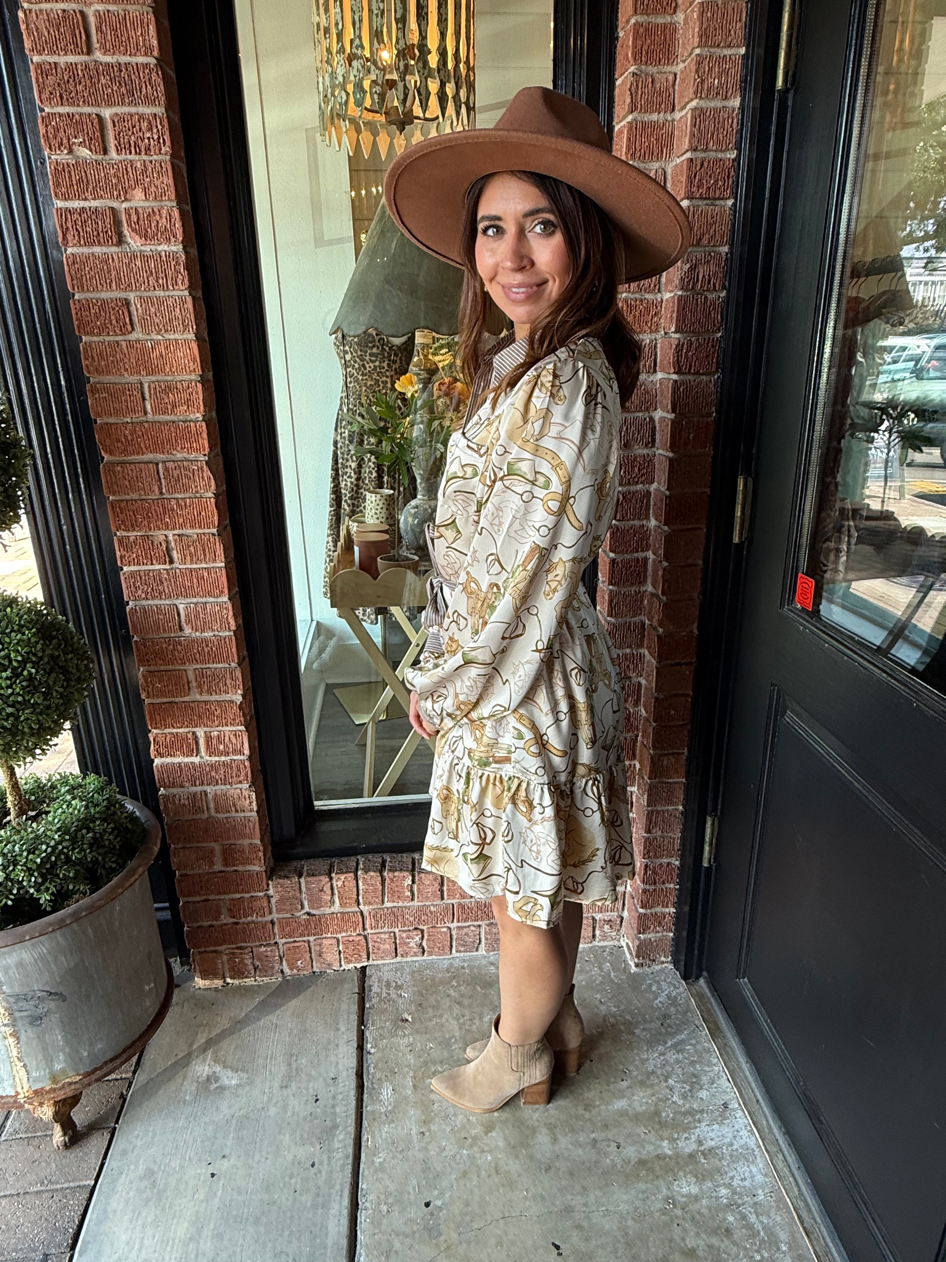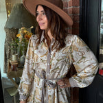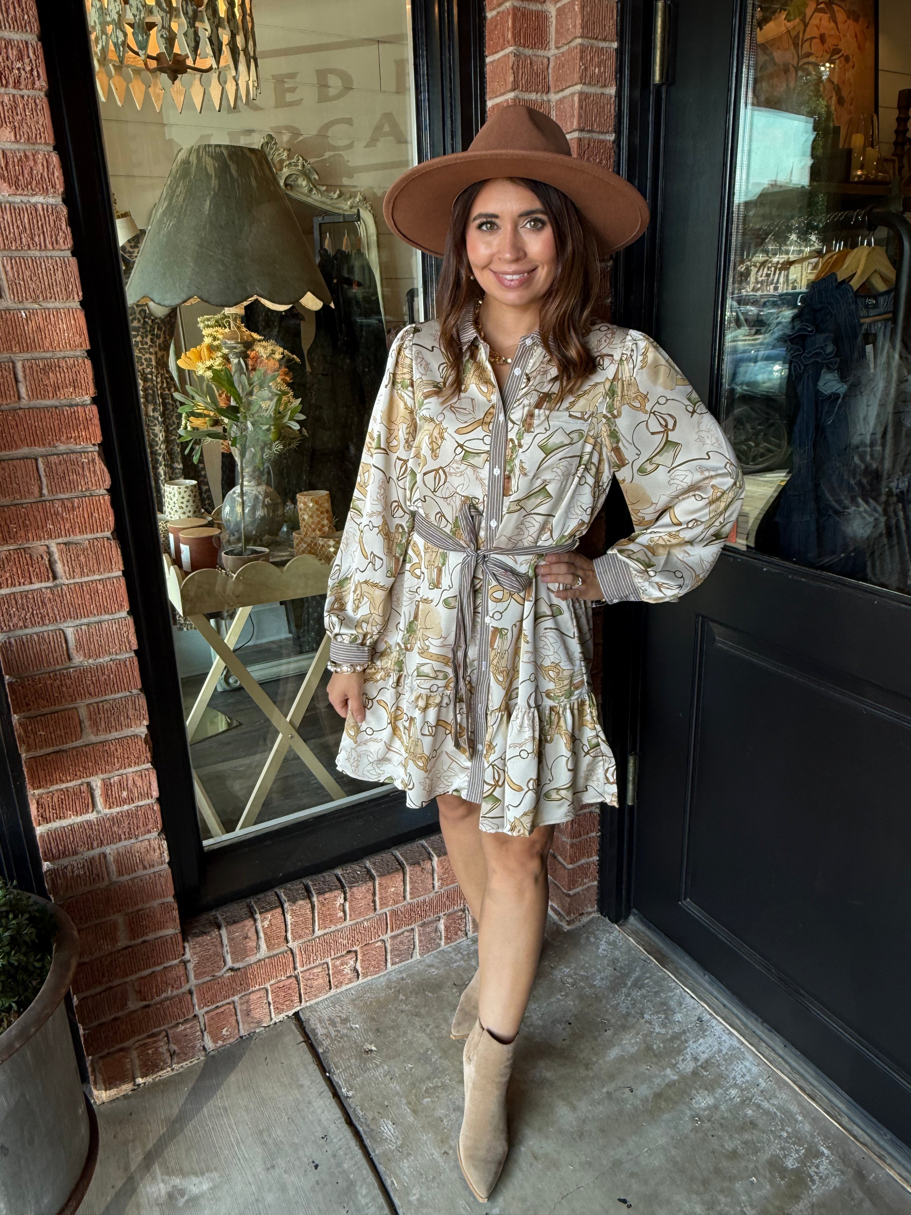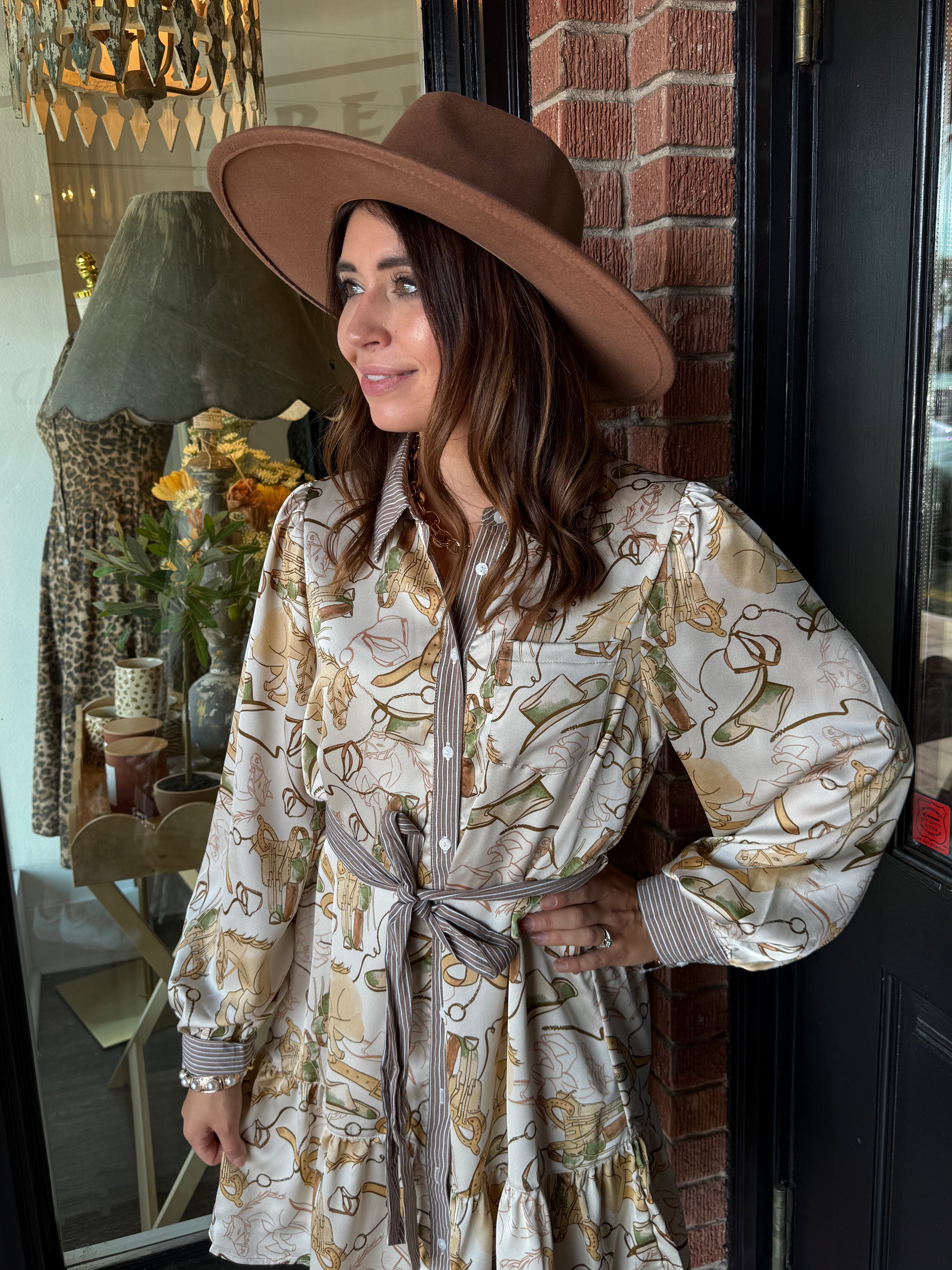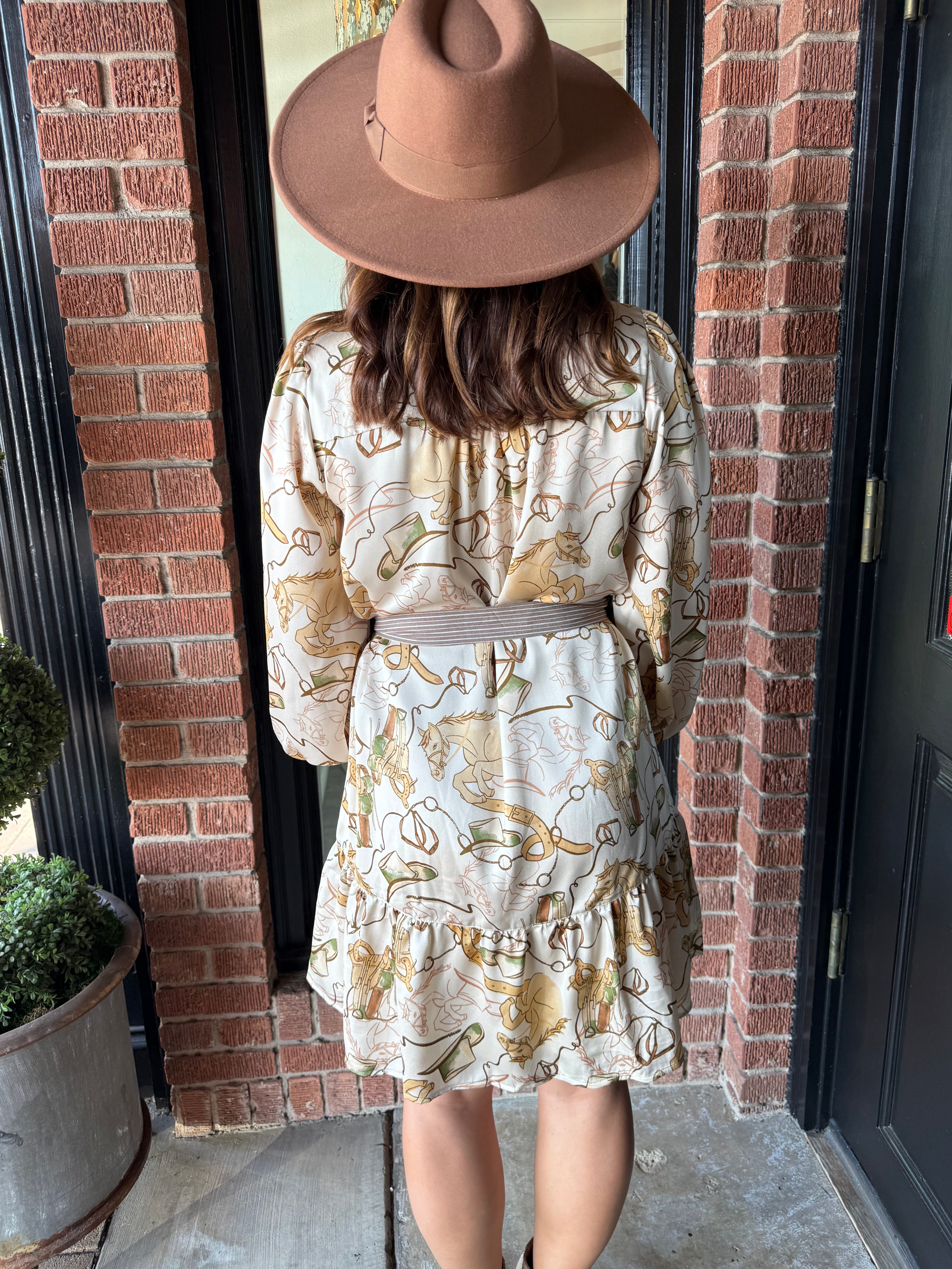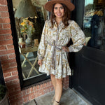 Step into effortless style with the Wynonna Western Print Mini Dress. This playful yet polished piece features a mix of western-inspired prints and contrast stripes for a fashion-forward look. Designed with a flattering mini silhouette, long puff sleeves, and a tie sash at the waist, it’s perfect for casual outings, brunches, or weekend adventures.