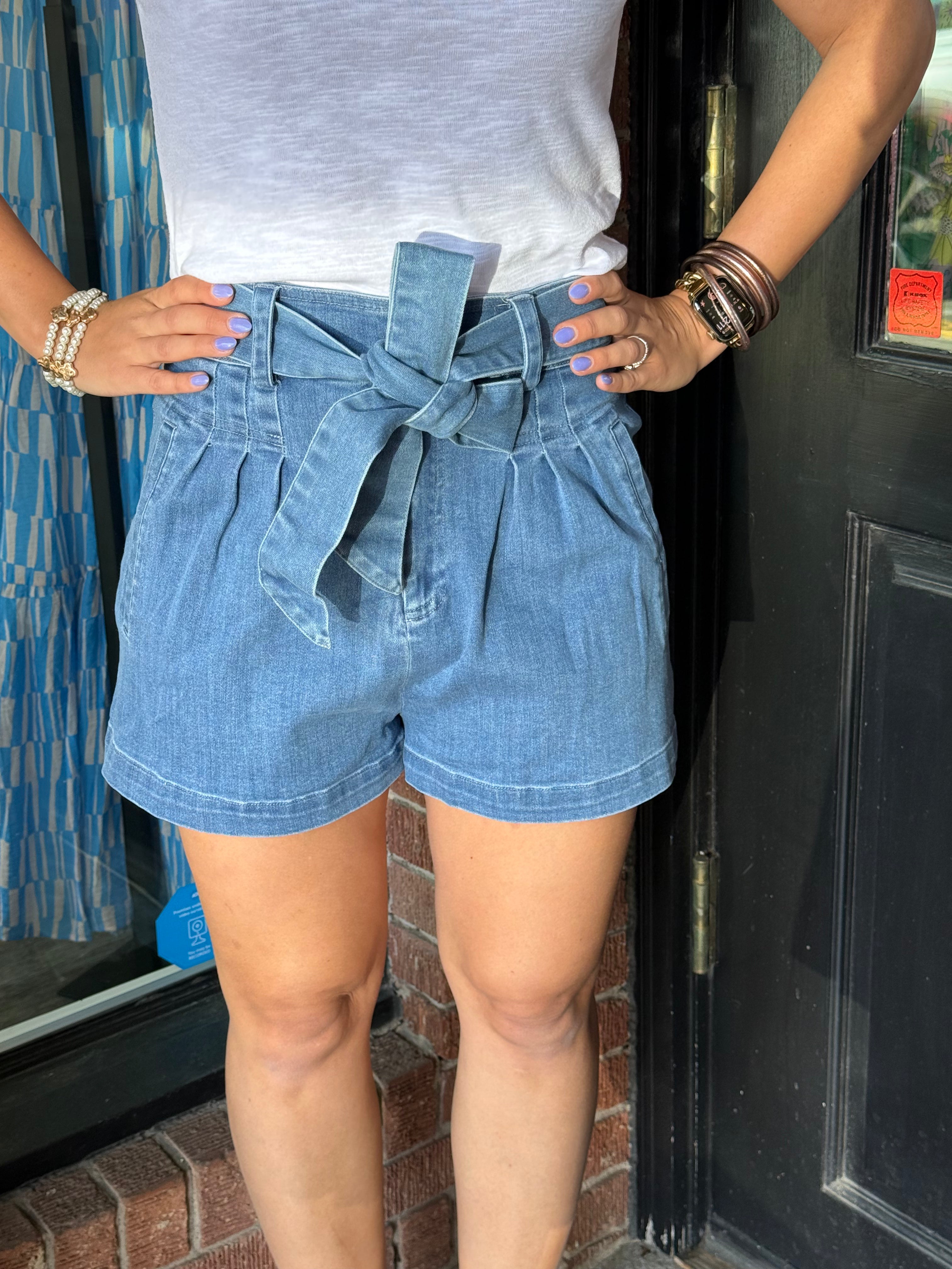 These Zoe Pleated Denim Shorts are the perfect blend of style and comfort! Featuring a high-waisted fit with belt loops and a matching sash belt, these shorts offer a flattering silhouette. The relaxed-fit leg has two front pockets and pleats for added detail. These versatile shorts are easy to pair with any top and sneakers for a casual look, or dress them up with heels for a more polished vibe.